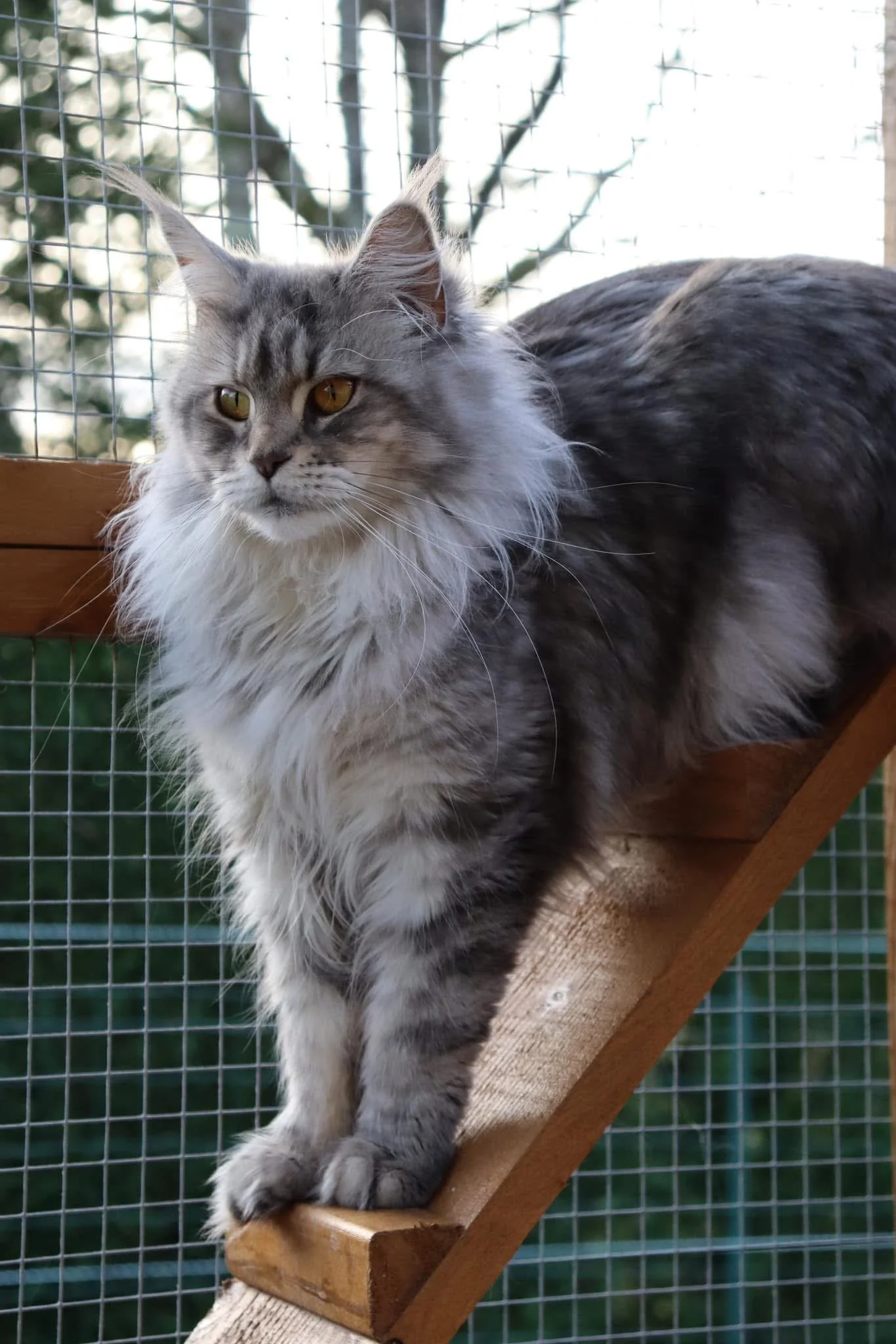 Une grâce naturelle qui capte immédiatement l’attention de tous. Avec son allure majestueuse et son port élégant, elle incarne la noblesse et la douceur. Sa fourrure luxuriante, dense et soyeuse, semble presque scintiller sous la lumière, tandis que ses grands yeux perçants témoignent de sa sagesse et de son caractère doux. Bientôt, cette beauté délicate sera maman, apportant une nouvelle génération de petits trésors pour l’année 2025. Elle sera une mère aimante et attentive, transmettant à ses petits toute la splendeur et la noblesse.